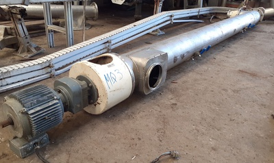 Entrada e Saída: 6" Medidas da rosca Diâmetro: 8" Comprimento: 3.380 mm Passo: 7" 1/2 02 portas laterais de 210 mm x 140 mm Com motor e redutor (sem identificação)