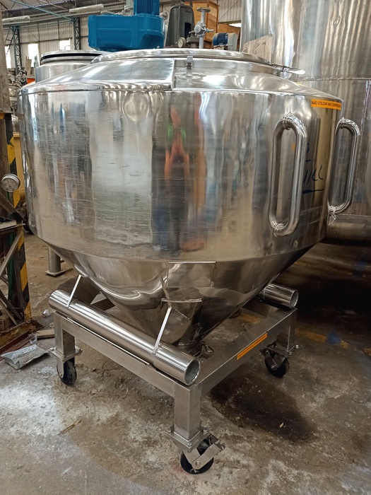 Tampa cônica Entrada: 300 mm Boca de entrada: 800 mm Medidas Diâmetro: 1.460 mm Altura: 600 mm Cone: 700 mm Fundo cônico Saída de 190 mm com válvula Base com rodízio